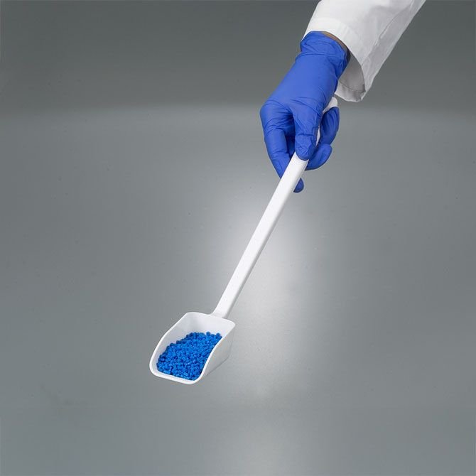 A concha de amostragem para sólidos estéril é fabricada em poliestireno branco de alta qualidade com cabo extra longo, é produzida em condições de sala limpa ISO classe 7, embalada individualmente e posteriormente esterilizada por radiação gama para atender aos mais altos requisitos de limpeza.