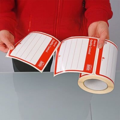 Etiqueta Vermelha Ultra Adesiva – estão disponíveis em diferentes cores: com impressão em vermelho, azul, verde, amarelo, preto ou neutro (sem impressão, na cor branca).