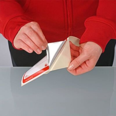 A parte posterior da Etiqueta Vermelha Ultra Adesiva Close-it é revestida com um adesivo de alta aderência, garantindo fixação firme na maioria dos recipientes comerciais — inclusive em superfícies cobertas com pó fino, levemente úmidas ou até mesmo congeladas, onde etiquetas convencionais ou fitas adesivas não funcionariam.